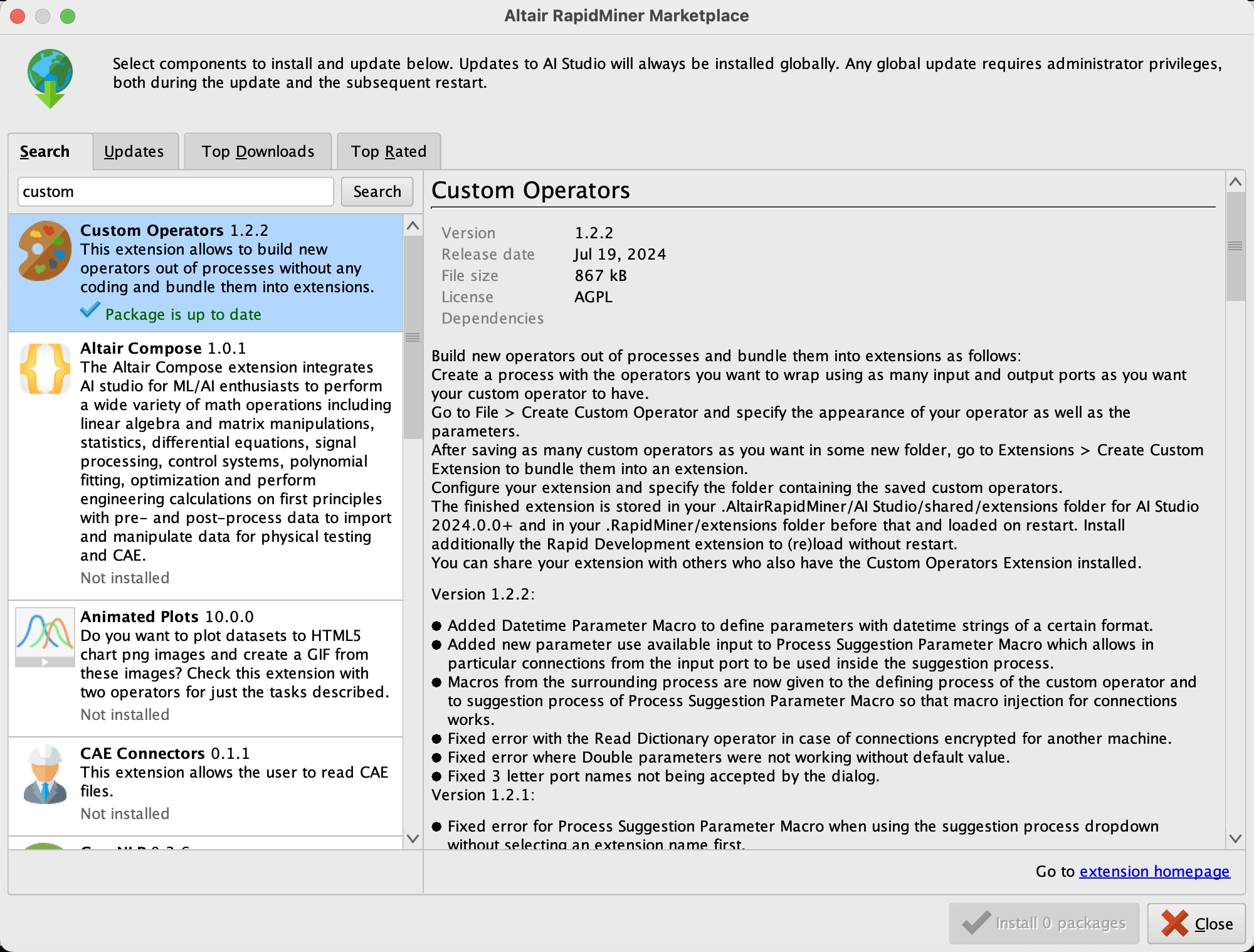 - 커스텀 오퍼레이터로 저장하기 위해서는 먼저 커스텀 오퍼레이터 패키지를 다운로드해야 합니다. 그러므로 먼저 이 패키지를 다운로드하겠습니다.