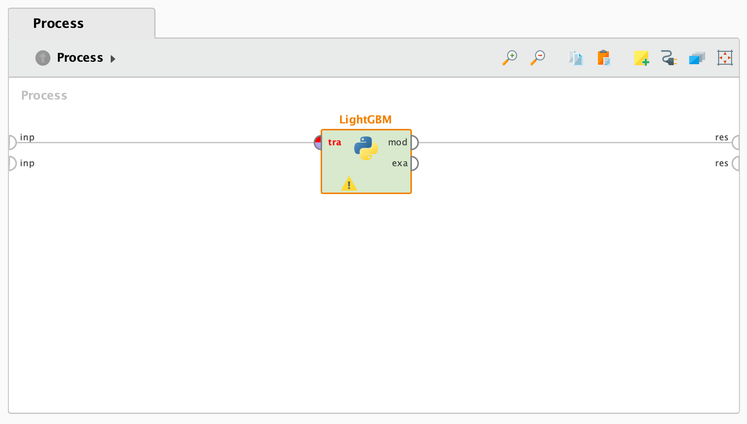 이전 글에서는 LightGBM 오퍼레이터를 생성하고 프로세스에서 테스트했습니다. 저장할 때는 오퍼레이터만 저장하므로 다른 오퍼레이터들은 제거해야 합니다. 또한, 입력 포트(input port)와 출력 포트(output port)가 연결되어 있어야 한다는 점에 주의해야 합니다. 오퍼레이터에 입력과 출력이 필요하기 때문입니다.