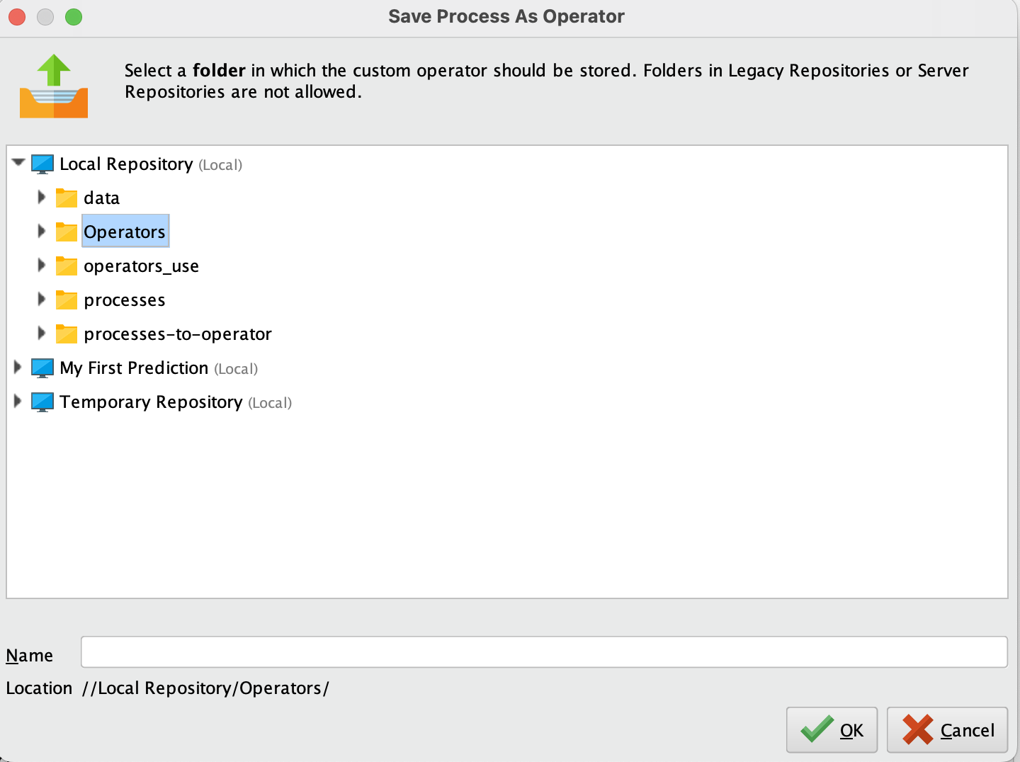 - 오퍼레이터가 저장될 위치를 선택합니다.