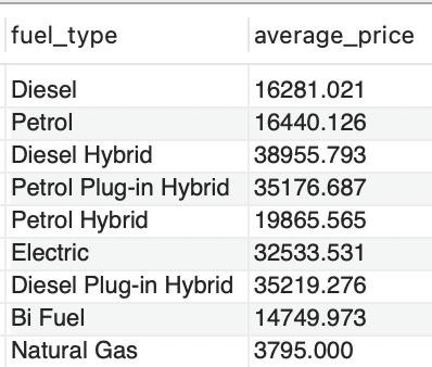 SELECT fuel_type, ROUND(AVG(price), 3) AS average_price