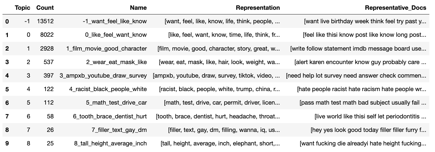 topics_rep = pd.DataFrame(model.get_topic_info())