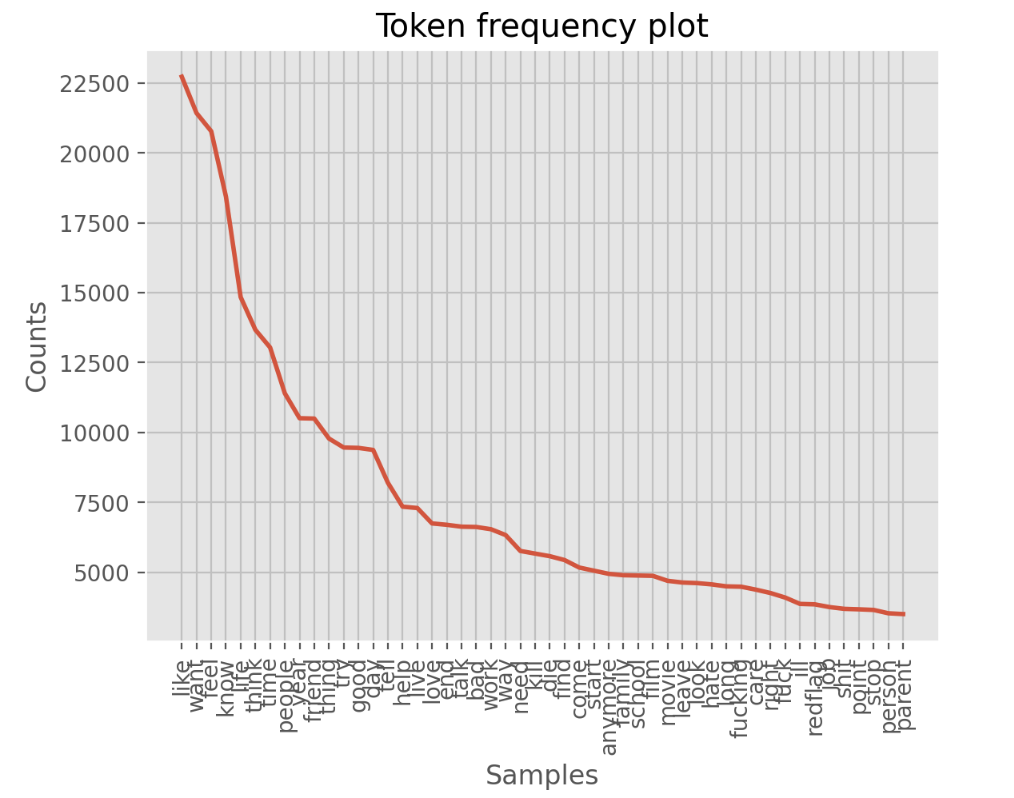 - 전처리의 마지막 단계로, spaCy의 불용어 리스트를 사용하여 불용어를 제거. 추가적으로, 프로젝트 맥락에서 의미가 없거나 lemmatization 중에 구조가 변경된 특정 단어들도 불용어 리스트에 추가하였음: ['just', 'wa', 'don', 've', 'ha', 'doe', 'm', 'll', 'didn', 'doesn', 'wan', 'an']
