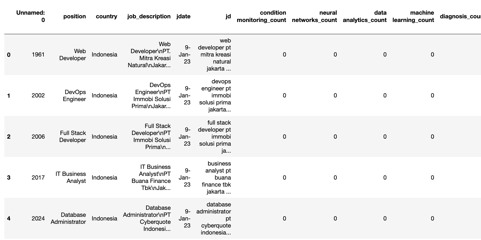 1. 가장 많은 채용 공고가 있는 10개 역할에 따라 데이터셋 필터링